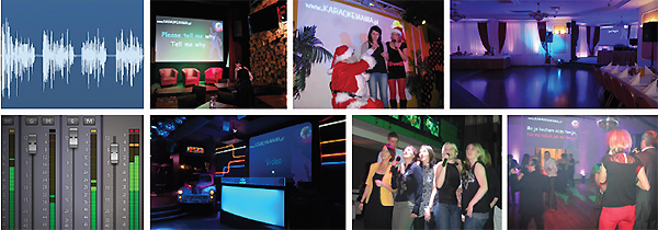 Zajmujemy się profesjonalną organizacją i realizacją imprez muzycznych. Prowadzimy m.in. imprezy: KARAOKE, DJ, BANKIETY i EVENT’y. Podczas imprez w zależności od zapotrzebowania posługujemy się językiem polskim, angielskim, włoskim i rosyjskim. Nasze zaplecze kreatywności i elastyczności wspierane jest przez profesjonalny sprzęt. Posiadamy duże ekrany, monitory LCD, projektory, bezprzewodowe mikrofony. Podczas imprezy zapewniamy pełne zaplecze techniczne. Imprezy prowadzone są na profesjonalnym sprzęcie nagłośnieniowym, oświetleniowym i multimedialnym (SHURE, AKG, QSC, YAMAHA, RCF, SOUNDCRAFT, PIONEER). Nagłośnienie dobierane jest w zależności od kubatury sali i ilości gości, w taki sposób żeby dźwięk był słyszalny na jednakowym poziomie przez wszystkich uczestników. W swojej bazie posiadamy 15 000 profesjonalnych utworów z tekstem, przygotowanych przez zawodowych muzyków. Utwory pochodzą z legalnego źródła, ponadto posiadamy licencje na publiczne odtwarzanie. Nasza oferta skierowana jest zarówno do klub’ów, pub’ów jak również może być świetnym pomysłem na zorganizowanie integracyjnej imprezy firmowej. Wystawiamy faktury. Koszt imprezy zależy od ilości gości, lokalizacji, terminu i czasu trwania. Mam nadzieję, że nasza oferta zainteresuje Państwa i zaowocuje korzystną dla obu stron współpracą. W przypadku kwestii nieujętych w ofercie prosimy o kontakt telefoniczny, z przyjemnością odpowiemy na Państwa pytania.
